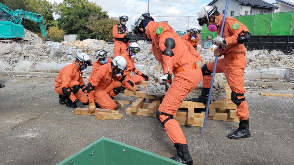 今回は、地震などで建物が倒壊した際に迅速な救助活動が行えるよう、解体中の公共施設を活用した訓練を行いました。