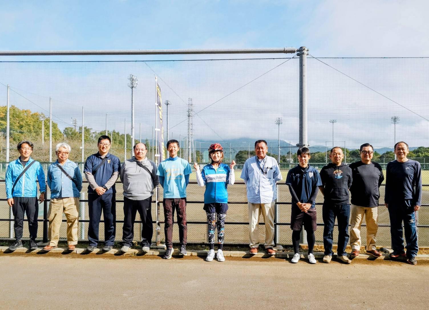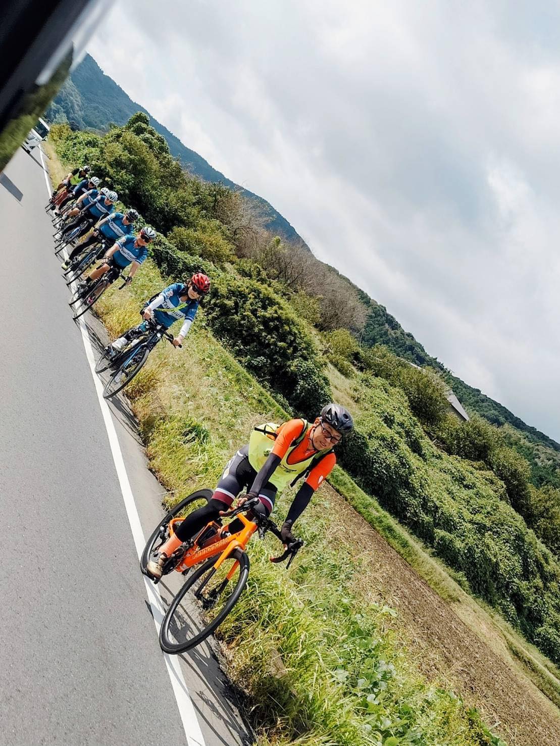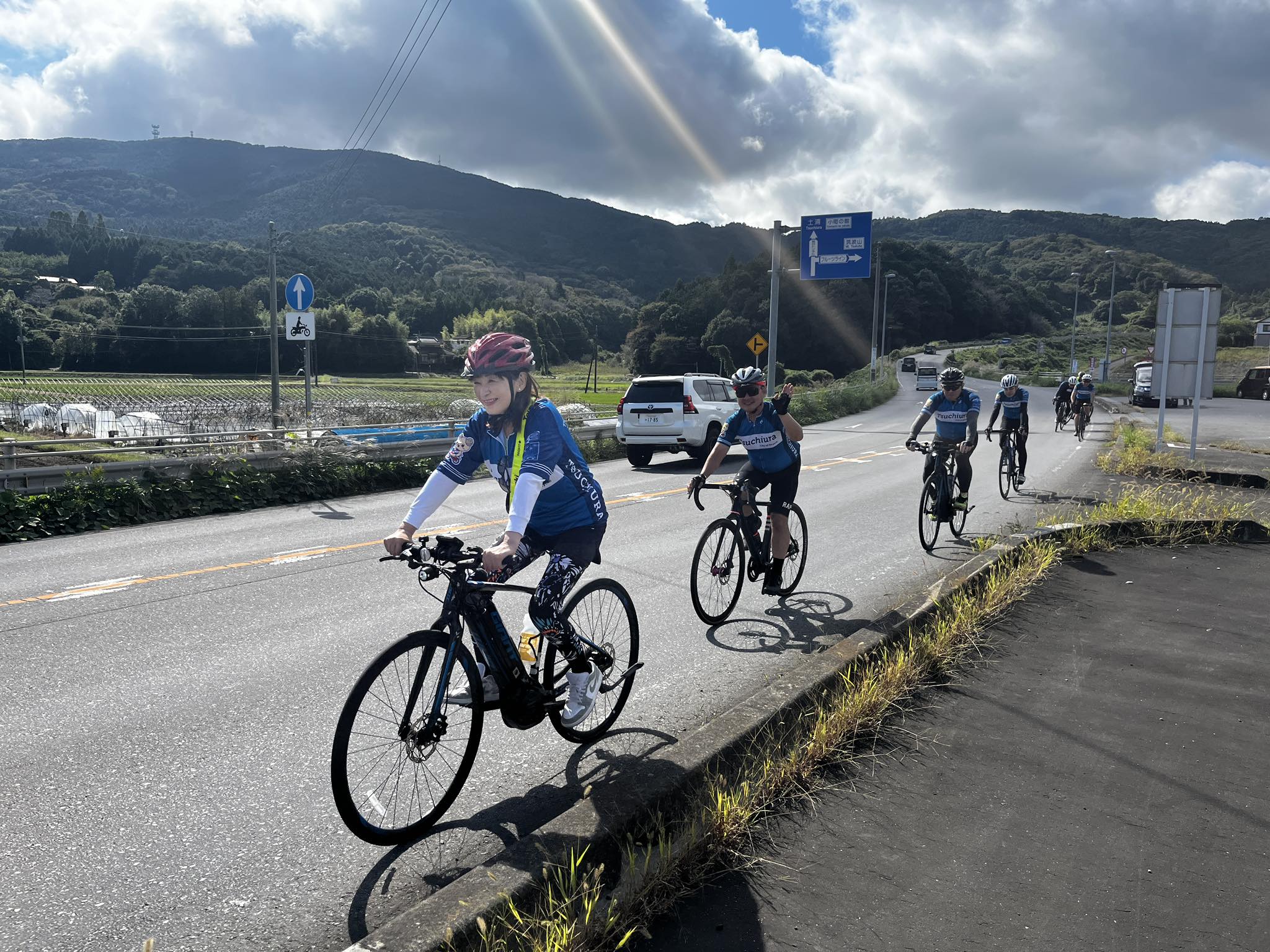 サイクリストの皆さんと一緒に、たすきをつないで走ります。