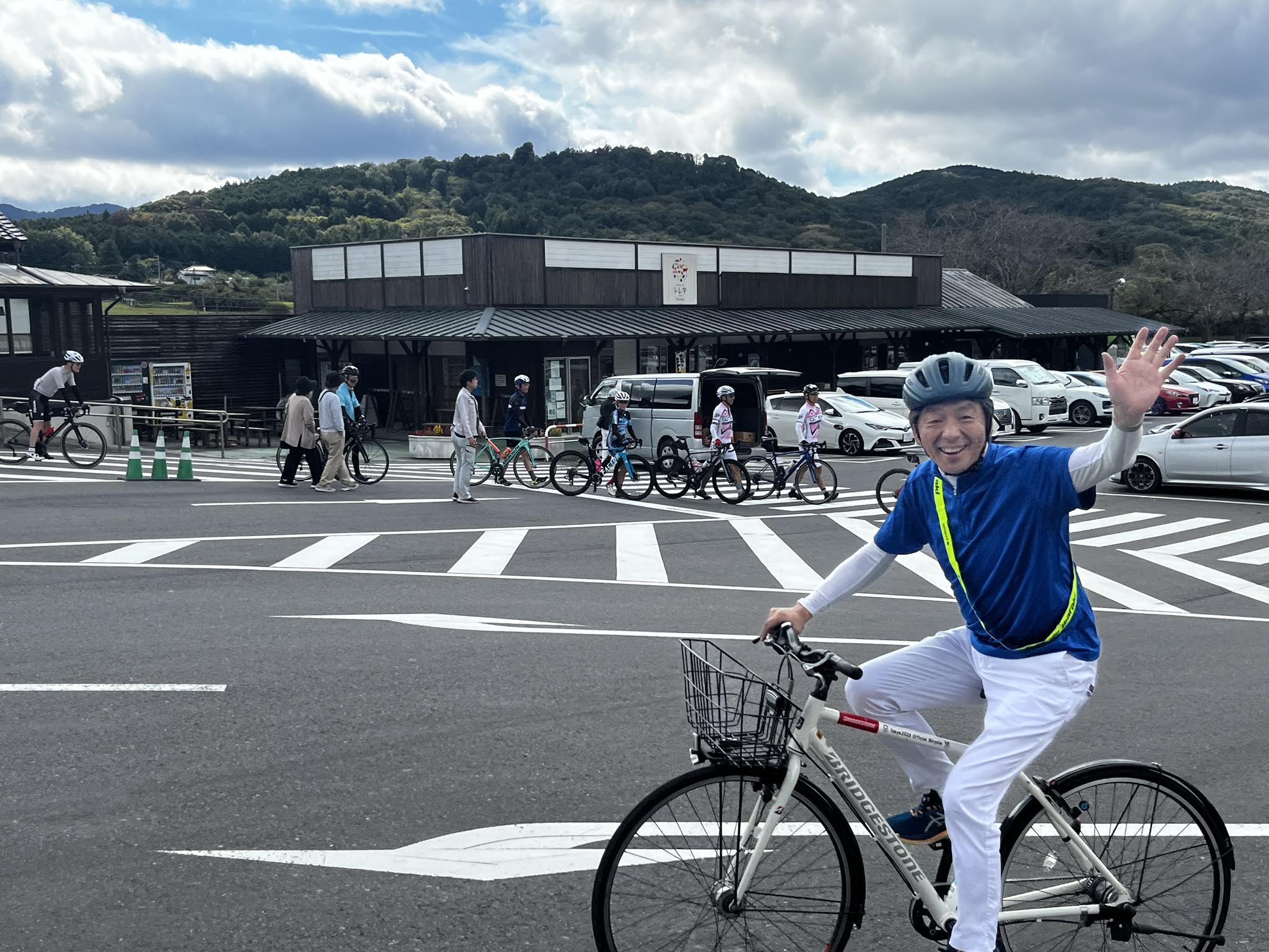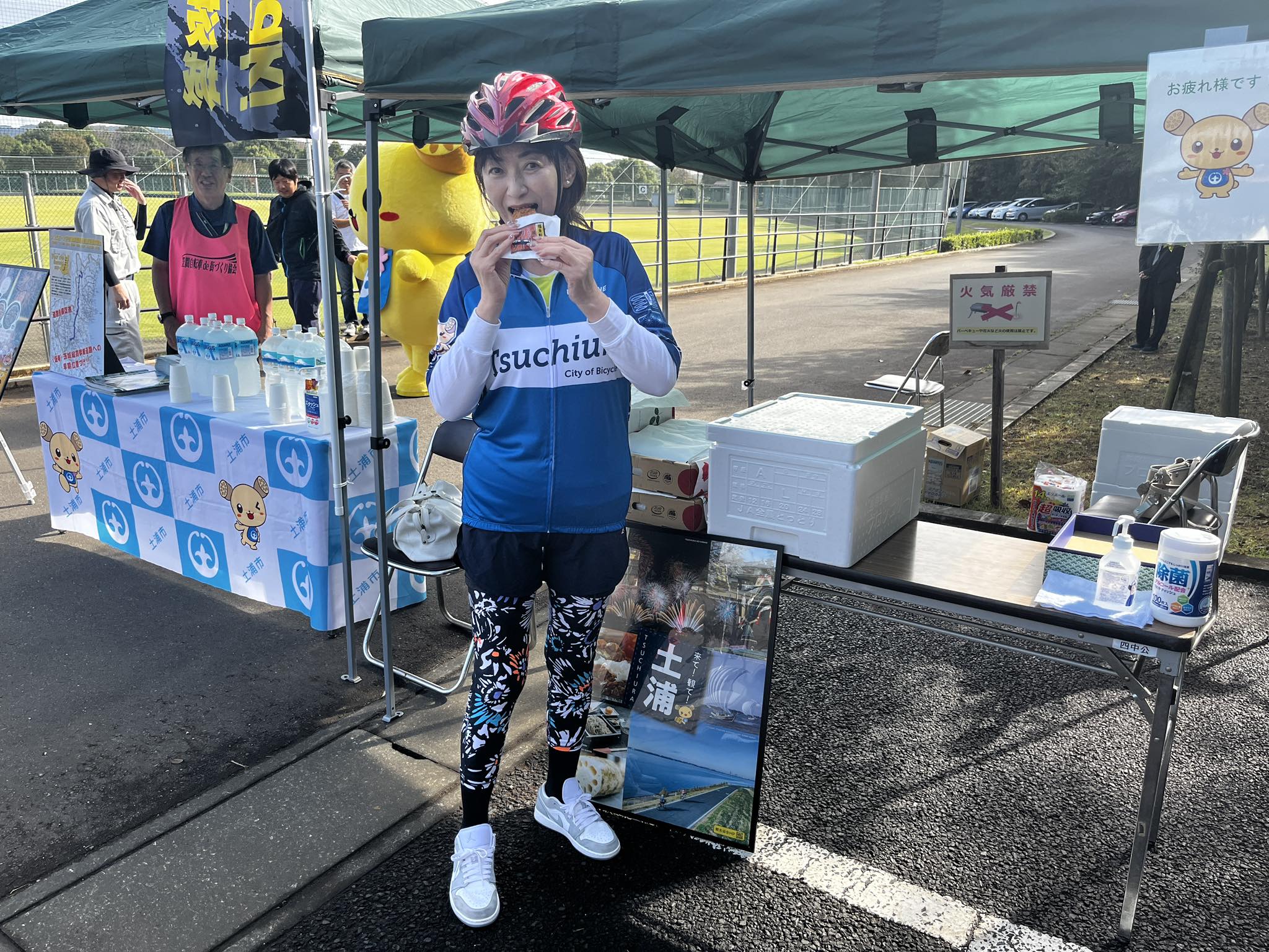 サイクリストの皆さんは、景色や各エイドに用意された名産品を楽しみながら、