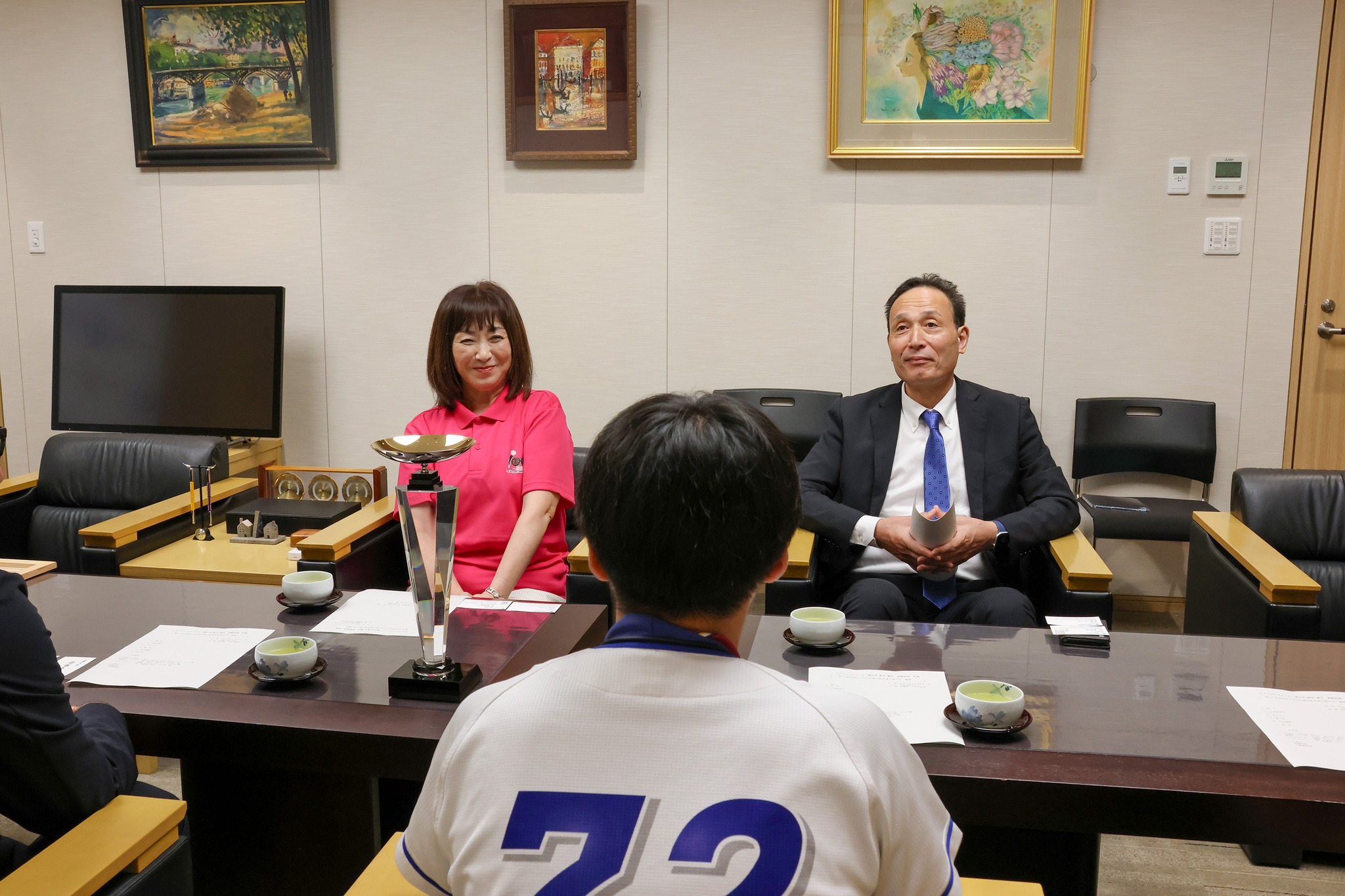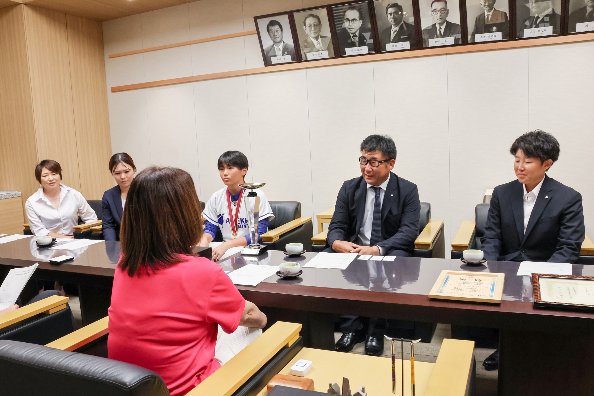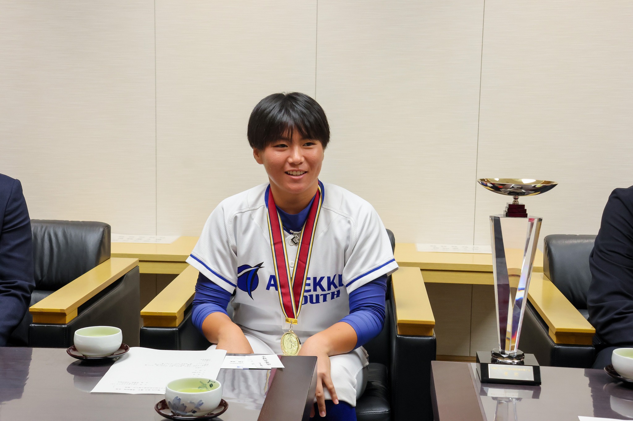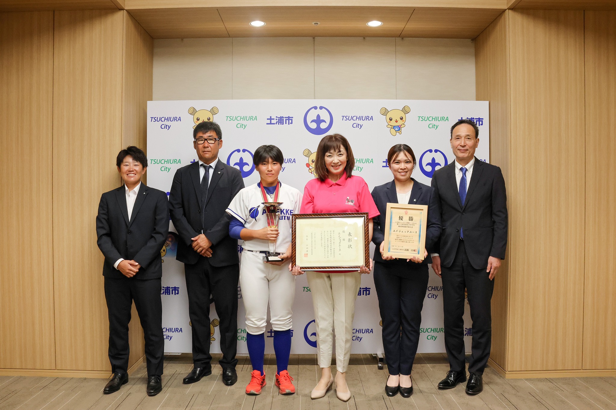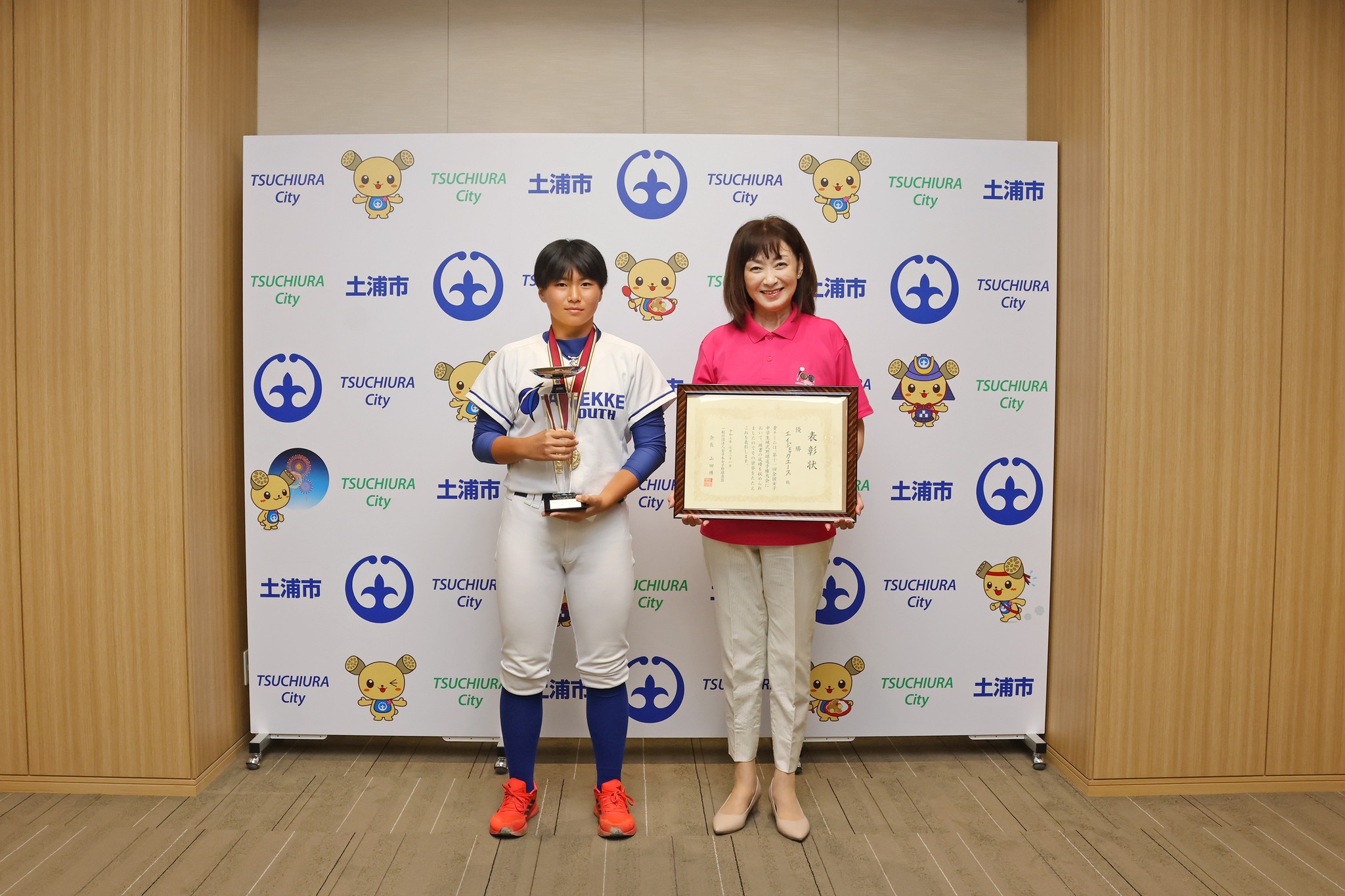 土浦第二中学校に通う堀之内那月選手が、「第11回 全国女子中学校公式野球選手権大会」の優勝報告に来てくれました。