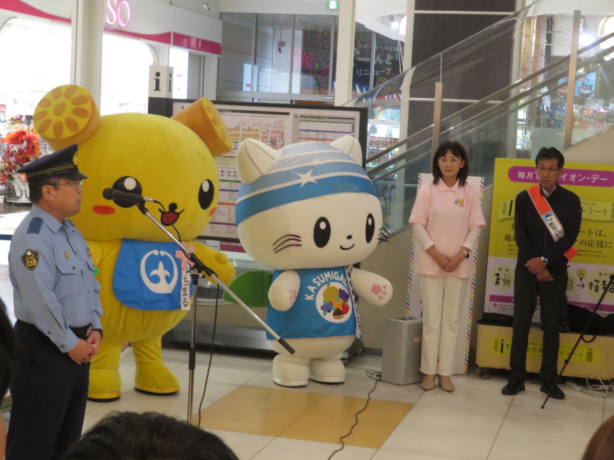 1日警察署長として、かすみがうら市長や土浦警察署長と一緒に、
