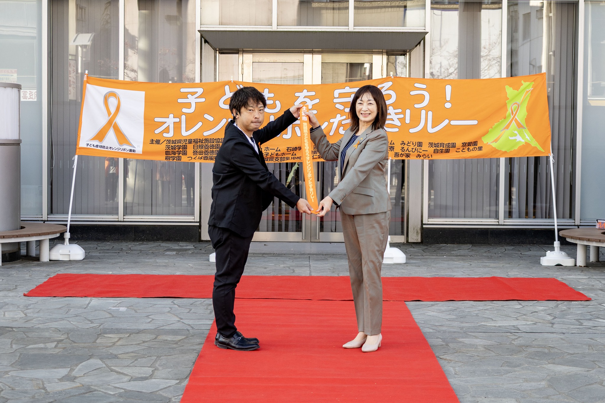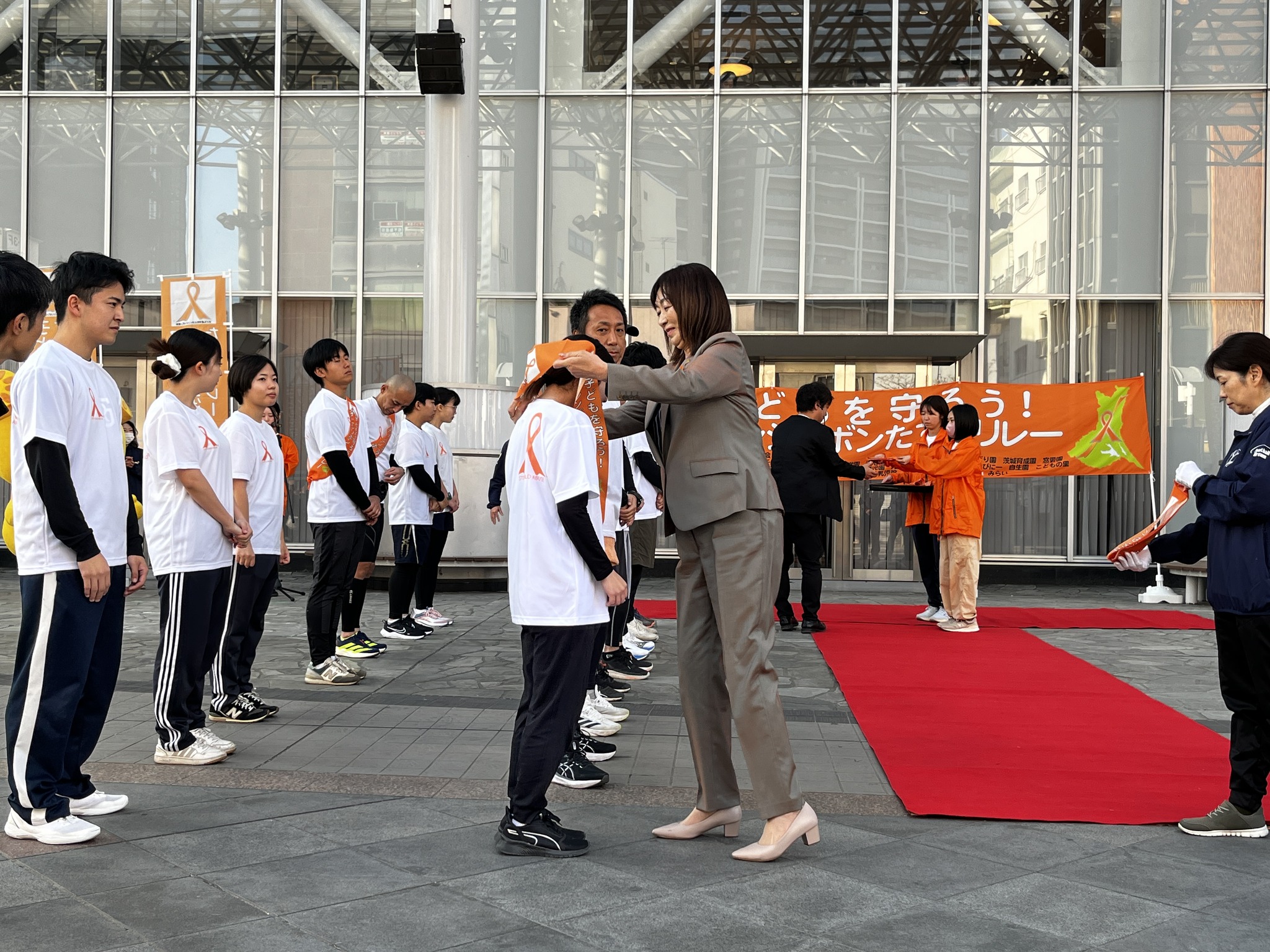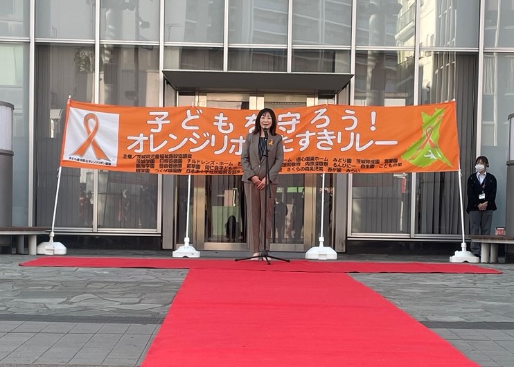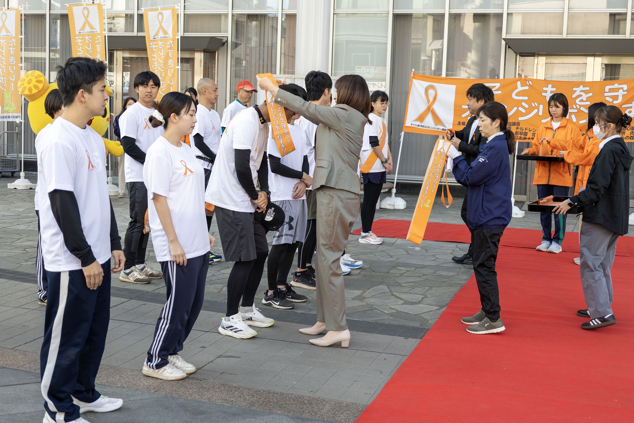 本日(11月7日)、「子どもを守ろう!オレンジリボンたすきリレー2025」の出発式が、