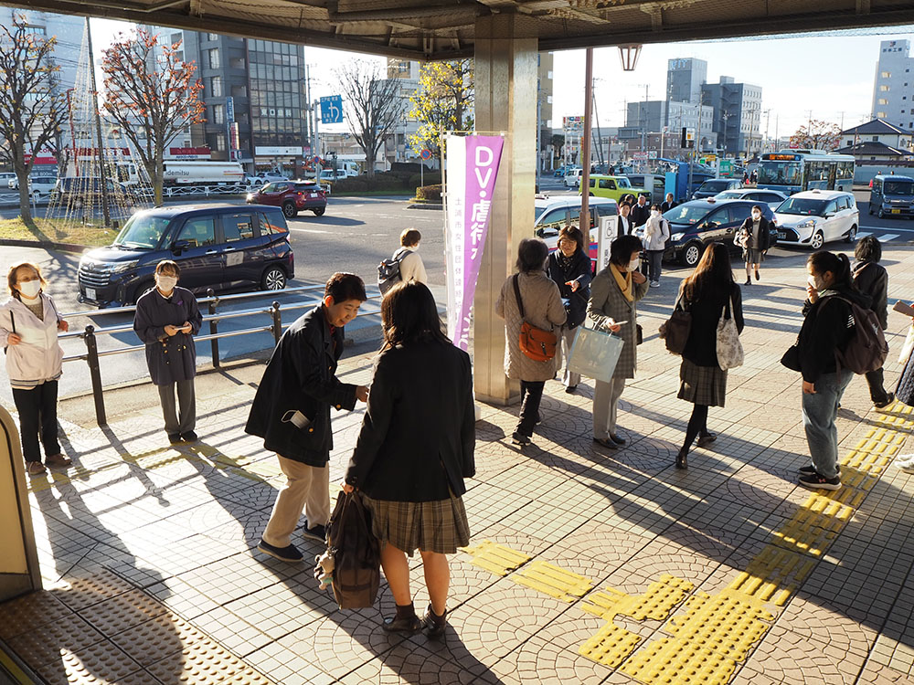 また、11月12日には土浦市女性団体連合会の皆さんが、駅前で啓発活動を行いました。