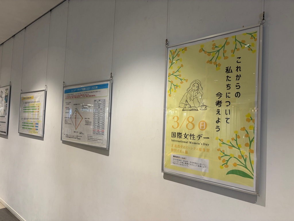 また、市役所2階の展示スペースで女性活躍に関するパネル展示を行っています。