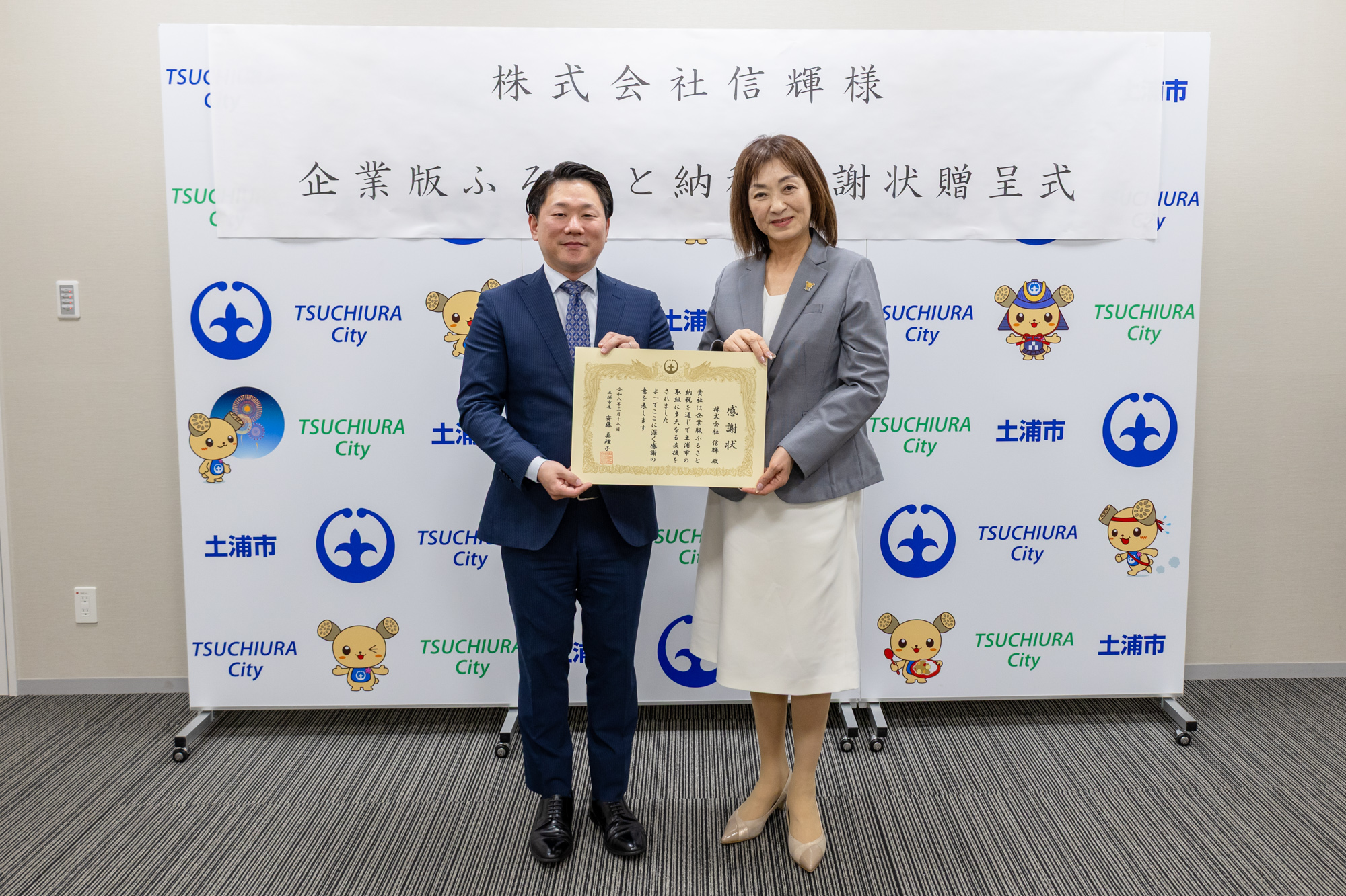 この度、株式会社信輝様から、土浦全国花火競技大会のためにご寄付をいただきました。