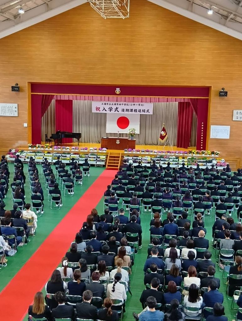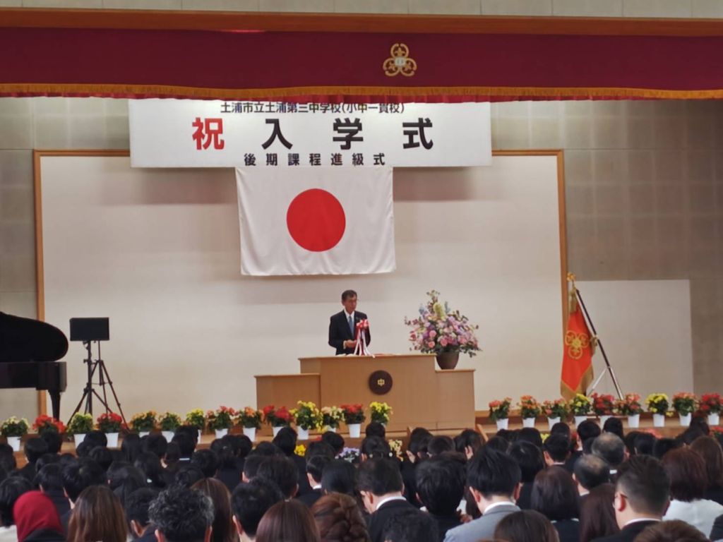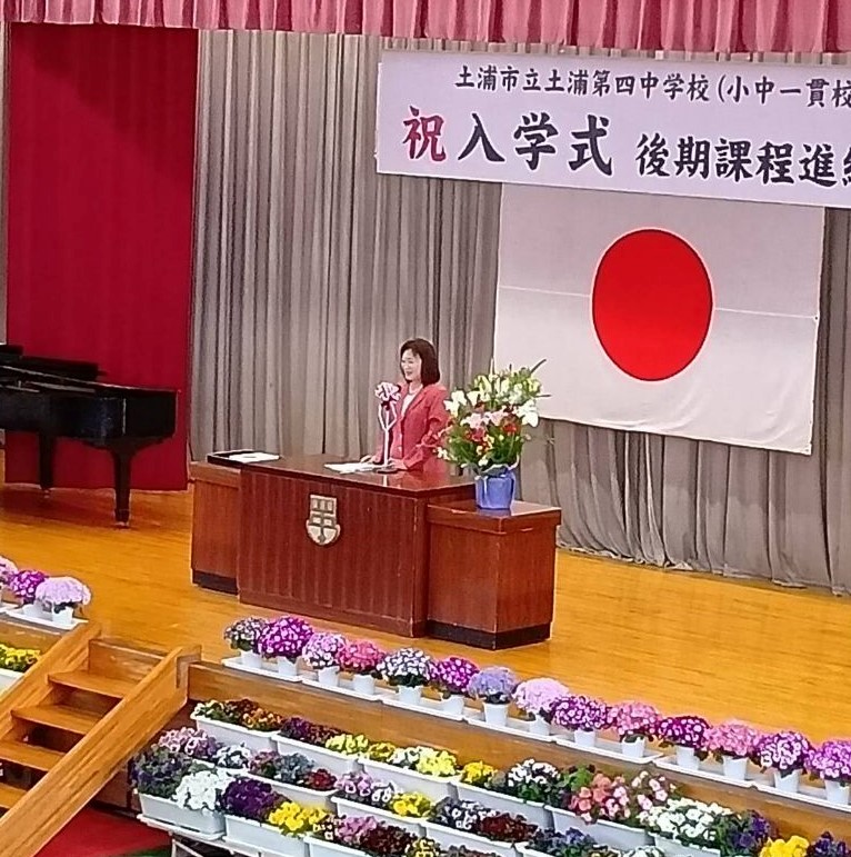 本日(4月10日)、土浦市内の中学校で行われた入学式に参加し、お祝いの言葉を伝えました。