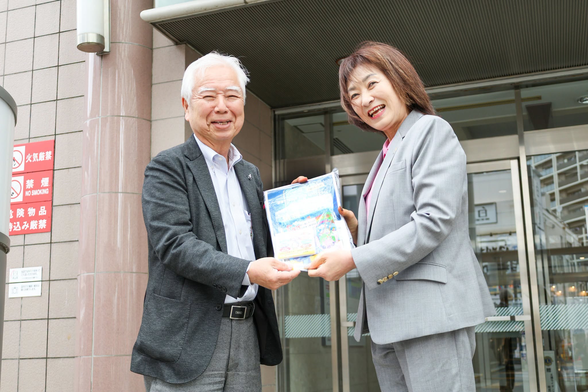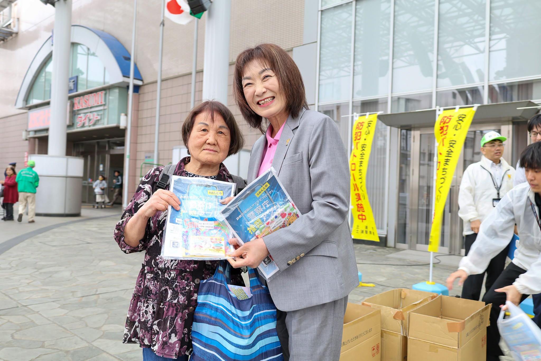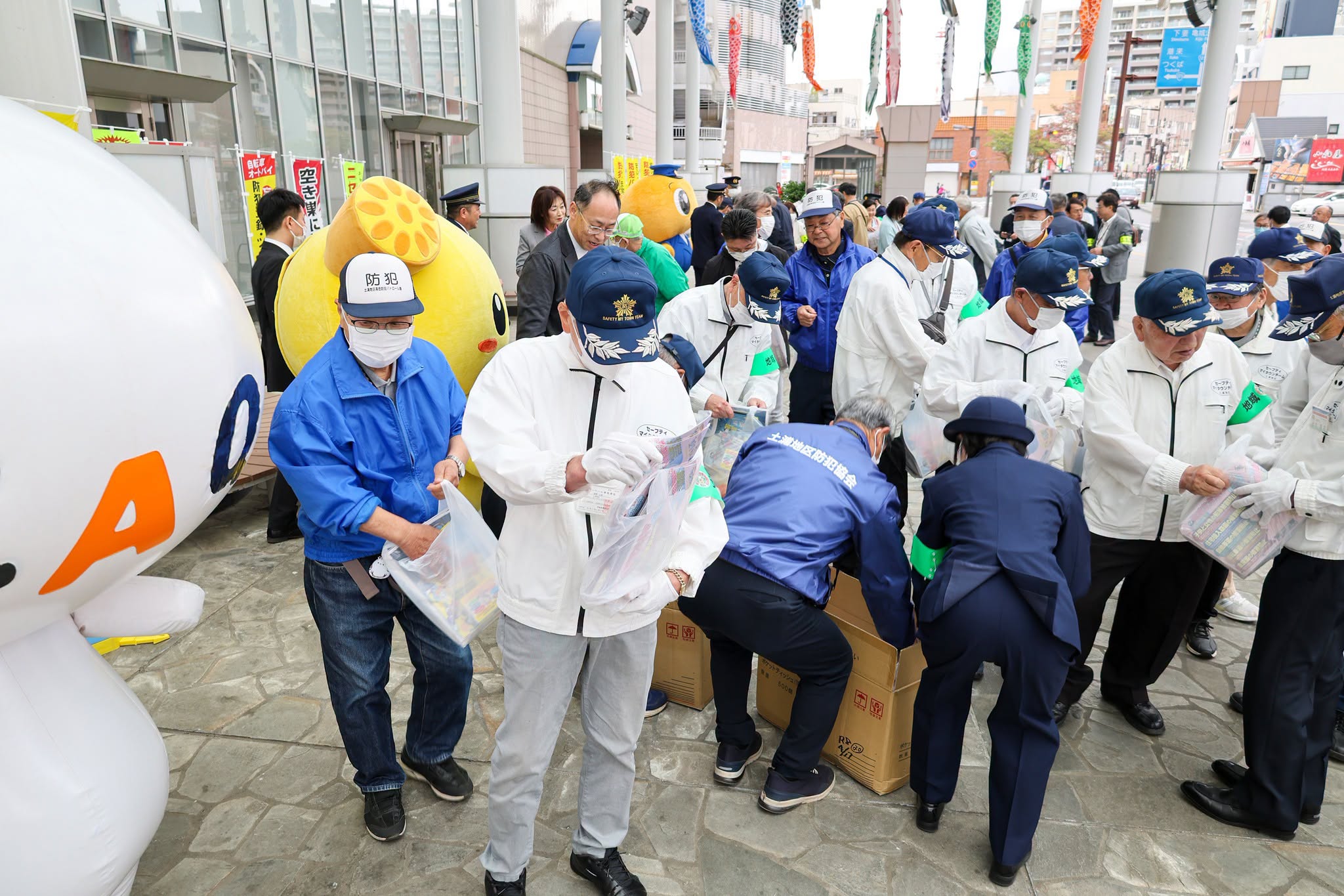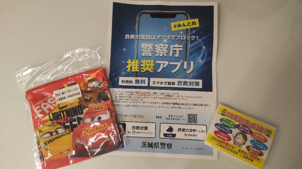 啓発品の巾着袋やチラシなどを配布して、防犯を呼びかけました。